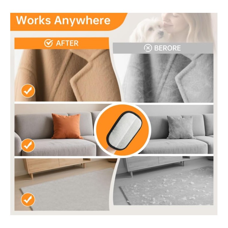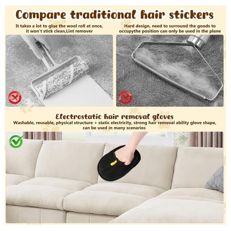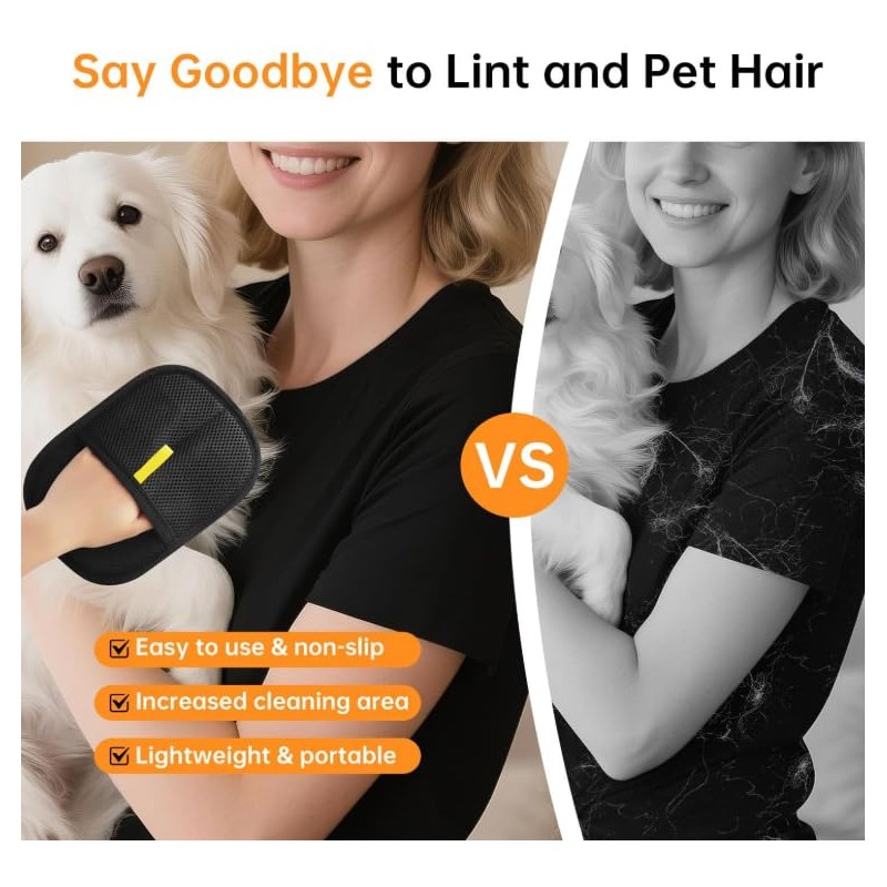 - Versatile Use: Works on all fabric surfaces—clothes, furniture, and car seats Comfortable Fit: Soft material keeps hands comfortable even during prolonged use