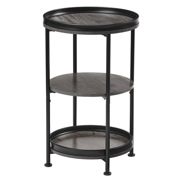 Dulcii Side Table, Round End Table with 3 Shelves for Living Room, Bedroom, Nightstand with Steel Frame for Small Spaces, Industrial Round Sofa Table, Outdoor Accent Coffee Table, Grey