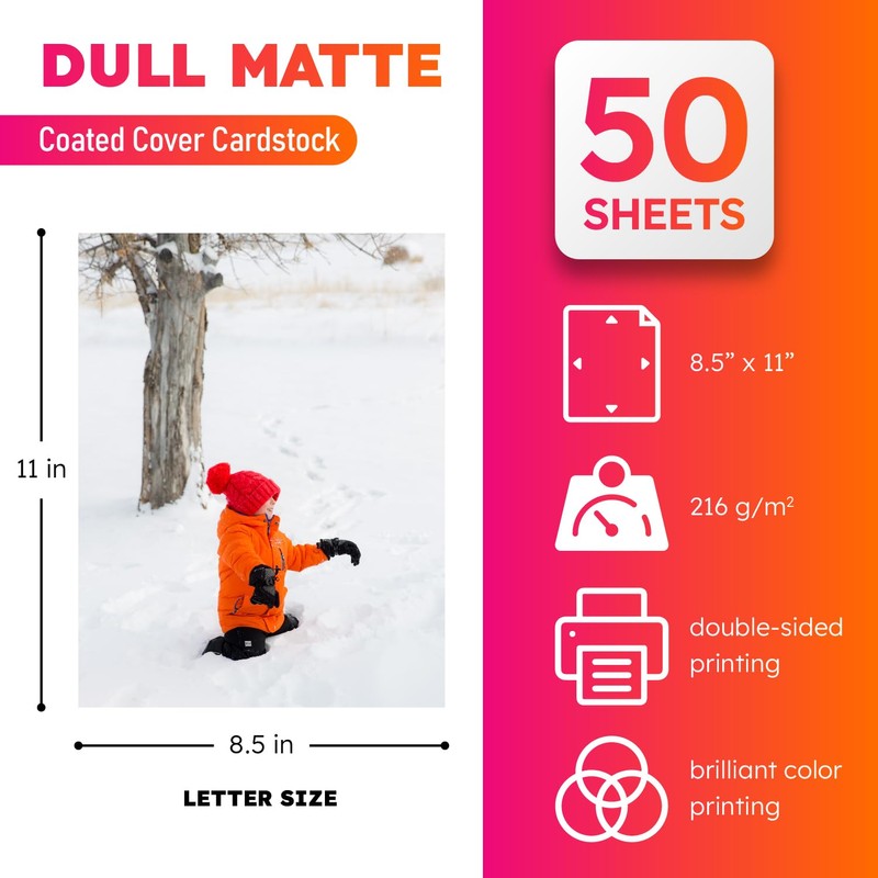 Dull 80lb Cover Digital Low Gloss Cardstock, Double Sided C2S, Coated, Perfect for Color Laser Printing, Design Proposals, Business Cards, Flyers, Brochures | Matte Finish | 8.5" x 11" | 50 Sheets