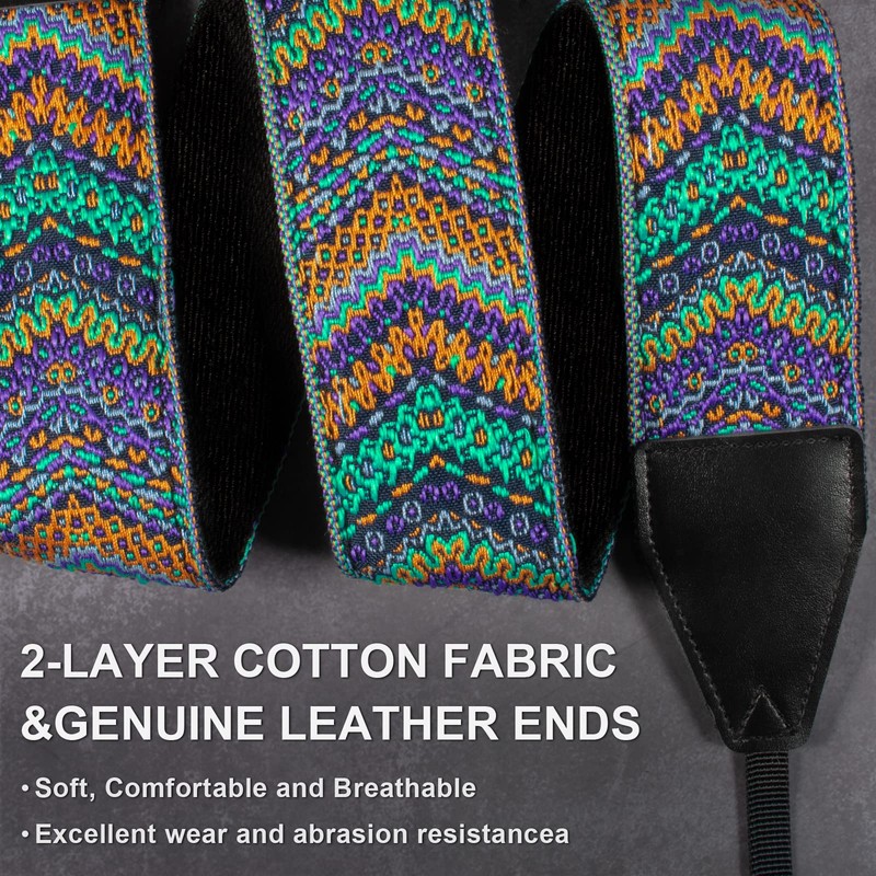 • ✔︎【Top Material】This camera strap features 2 layers of cotton fabric, embroidered with flower patterns on the surface, added vintage aesthetics to all the camera straps, black back is soft micro-brushed cotton canvas making it no-slip and skin friendly. The double-layered genuine leather ends and reinforced stitching ensure durability, which have been load tested to over 110lbs – way heavier than any camera you’d ever encounter!