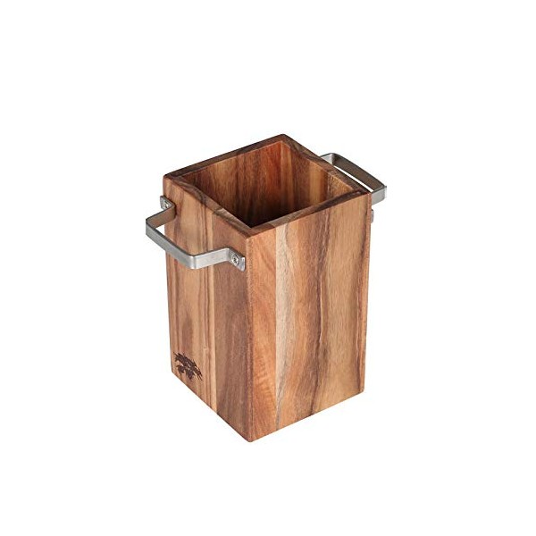 Dulton K19-0108 Acacia Cutlery Stand, Acacia Cutlery Stand with Handle, Height 5.1 inches (130 mm), Width 4.7 inches (120 mm), Depth 3.1 inches (80 mm)