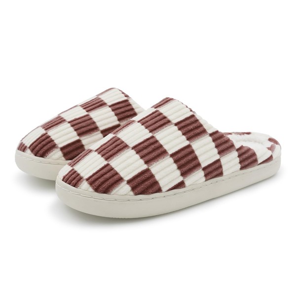 Dumhew Womens Mens House Checkered Slippers - Plaid Memory Foam Comfy Bedroom Indoor Home Slip On Ladies Slippers Size 5.5-6.5,Brown