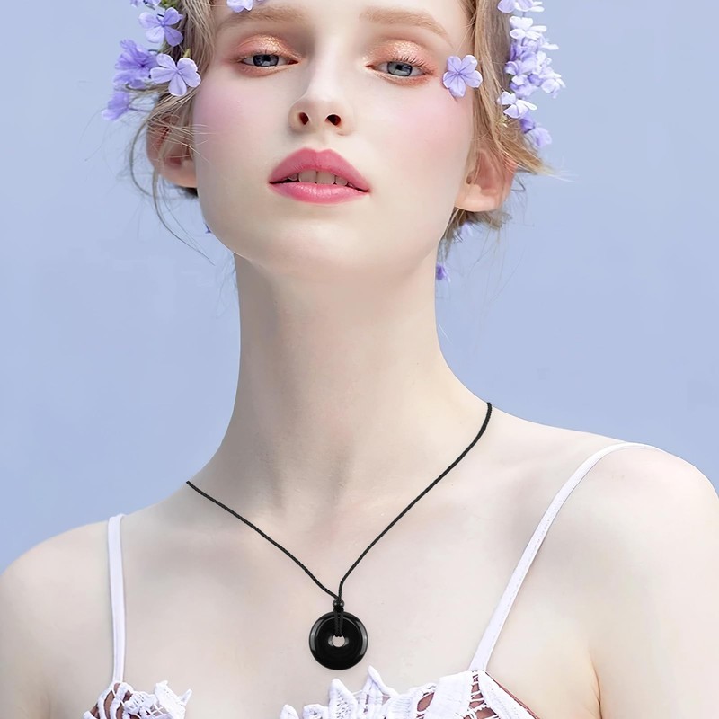 Dumhuts Black Tourmaline Pendant, Real Tourmaline Pendant with Doughnut Design, Healing Stone Necklace with High-Quality Cord for Meditation and Everyday Use, Obsidian, Obsidian