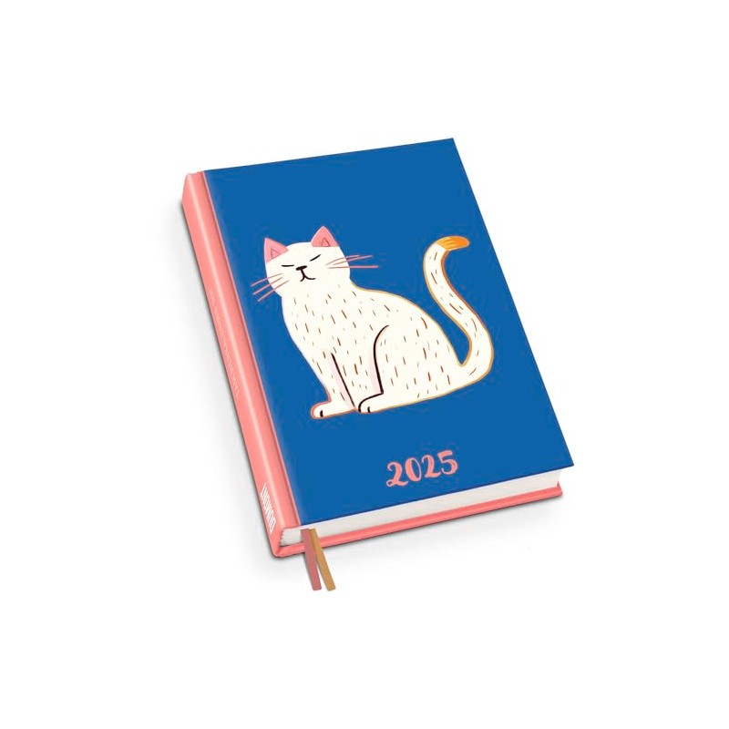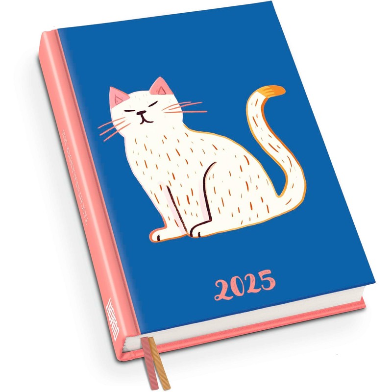 Dumont Pocket Diary White Cat 2025, 11.3 x 16.3 cm, Diary with Weekly Calendar, Two Ribbon Bookmarks and Many Special Pages