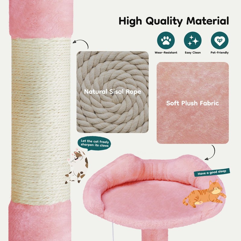 • 【Premium Construction】 Designed with your pet’s comfort in mind, this cat tree is built from high-quality, pet-safe materials. The soft plush fabric covering creates a cozy, warm space for your cats to relax. Durable natural sisal rope wraps the scratching posts, ensuring both safety and long-lasting use. Additionally, the base is reinforced with multiple layers of thick material to maintain stability and strength, providing a secure and enjoyable experience for your pets.