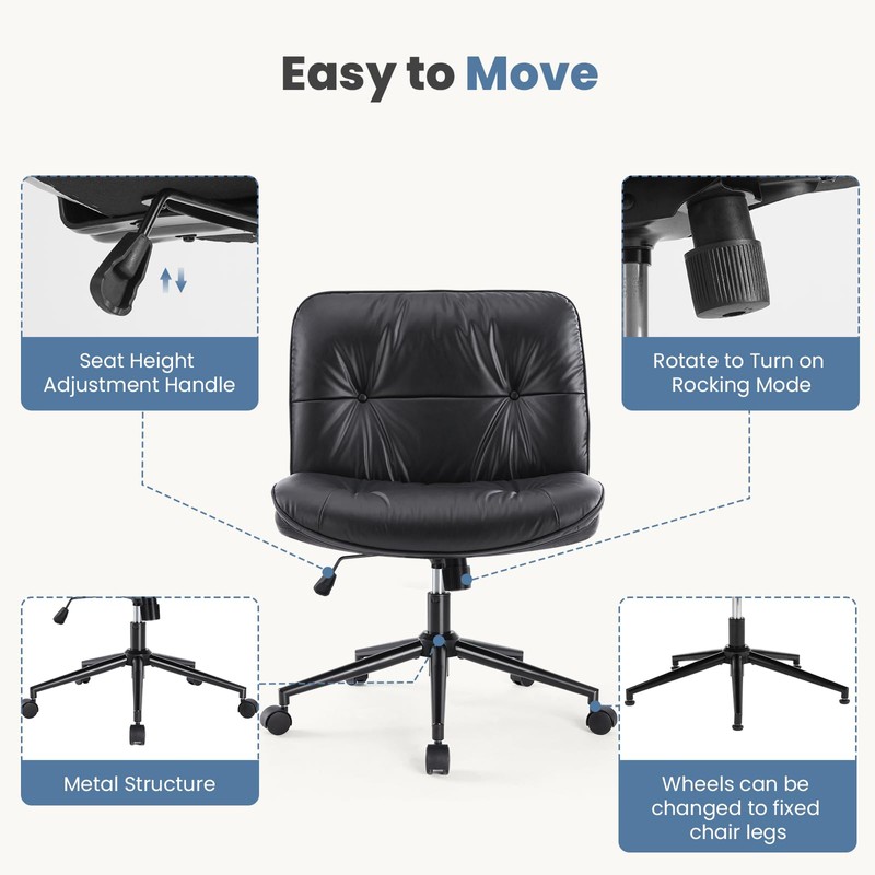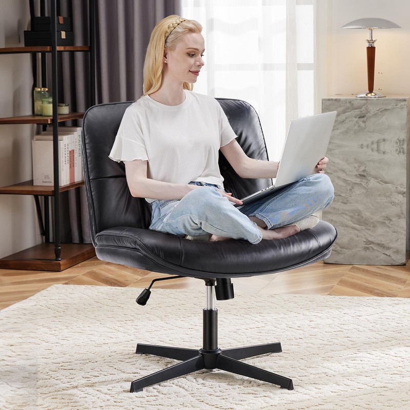DUMOS Criss Cross Chair with Wheels, Legged Office Armless Wide Seat, Adjustable Swivel Leather Task Vanity Home Office Desk Seating for Bedroom Dorm Student