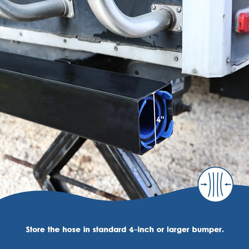 - 🌎【Easy To Store】 The RV sewer hose is made of flexible material and accordion construction. 10ft Hose collapsed to 45 inches for convenient storage, it doesn’t take as much space. It will fit 4" and above square bumpers.