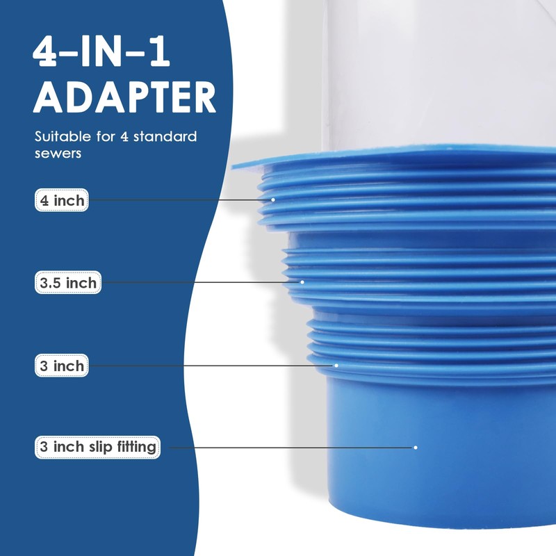 - 🌎【Clear View Adapter】 Clear 90 degree sewer adapter so you can see when the drain process is over. It fits 4 different sizes (3-inch slip, 3-inch, 3-1/2-inch and 4-inch NPT) of threaded dump station pipes.