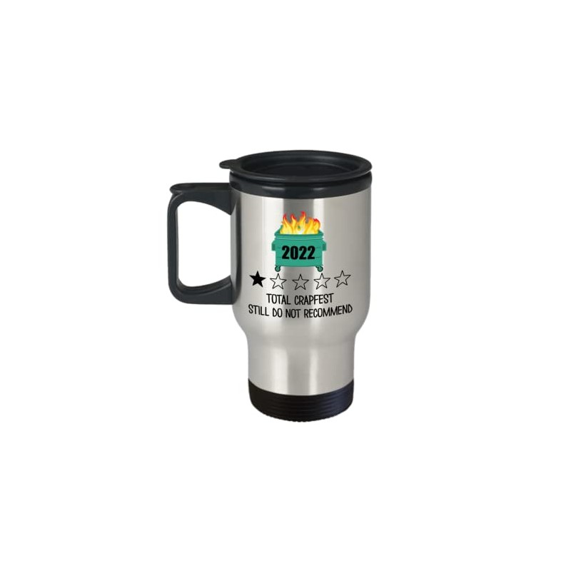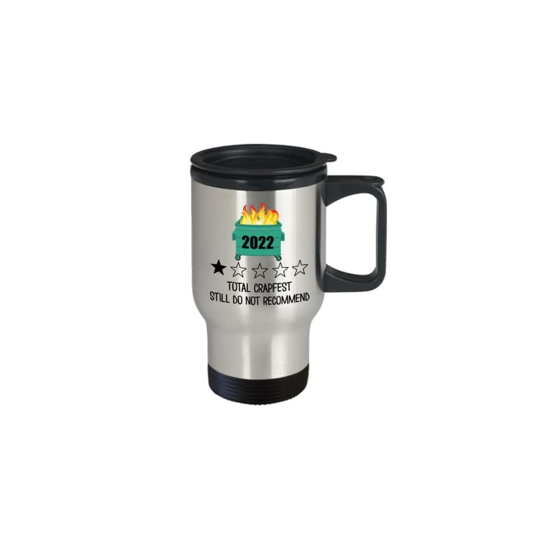Dumpster Fire 2022 Travel Mug Total Crapfest Still Do Not Recommend Funny One Star Review Rating White Elephant Secret Santa Ideas for Friends Coworke