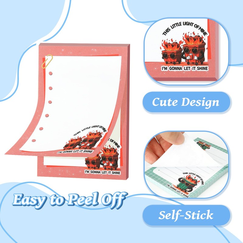 - SHINE THROUGH THE CHAOS: Inspired by "This Little Light of Mine, I’m Gonna Let It Shine," these burning dumpster sticky notes add a fiery glow of resilience and humor to your workspace while keeping you organized.