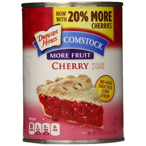 Duncan Hines Comstock More Fruit Pie Filling & Topping, Cherry, 21 Ounce (Pack of 8)