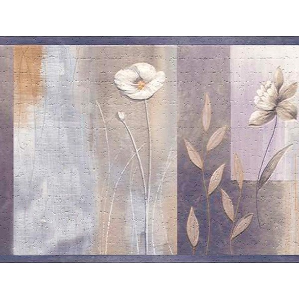 Dundee Deco Wallpaper Border Peel and Stick DDAZBD9029 Geometric Silver, Purple, Violet Flowers, Shapes Wall Border Retro Design, 15 ft x 7 in (4.57m x 17.78cm), Self Adhesive