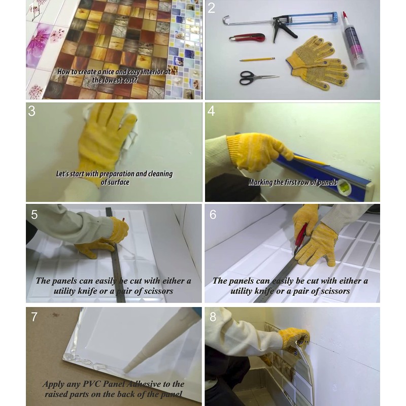- Pack of 5: total covered area is approximately 24.5 square feet; SUPER DURABLE: high quality PVC thermoplastic panel. No need for filling nail-holes, chips, cracks, smoothing the surface or sealing with a primer - use the panels to create the right atmosphere using only an adhesive.