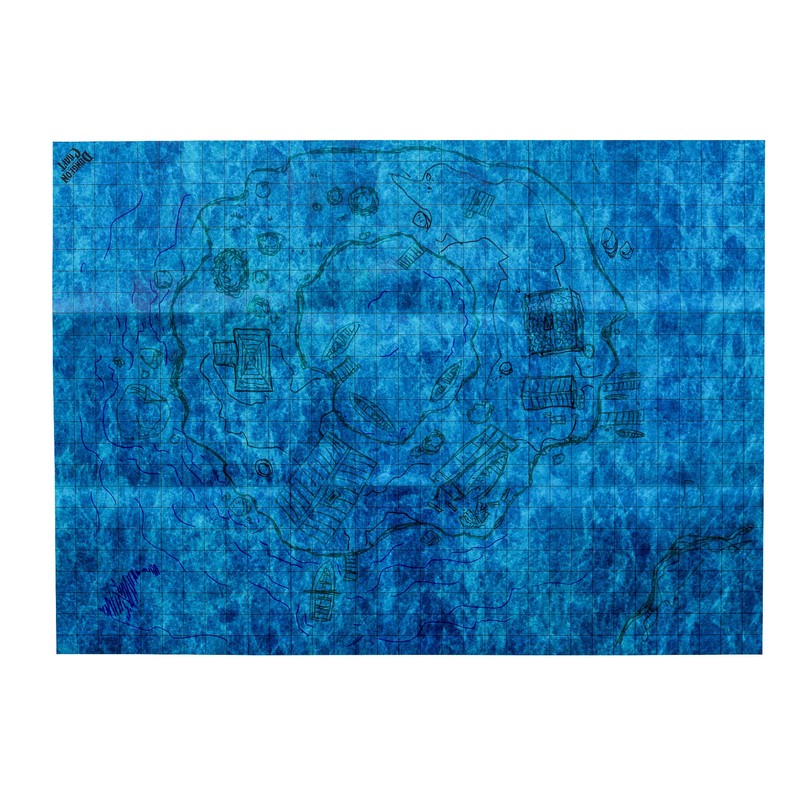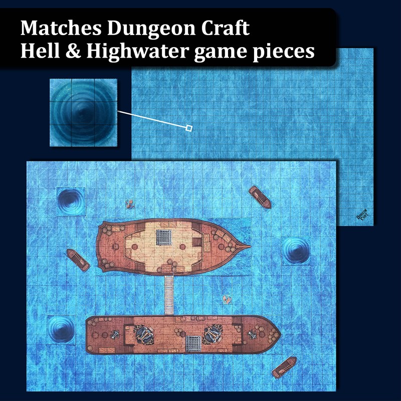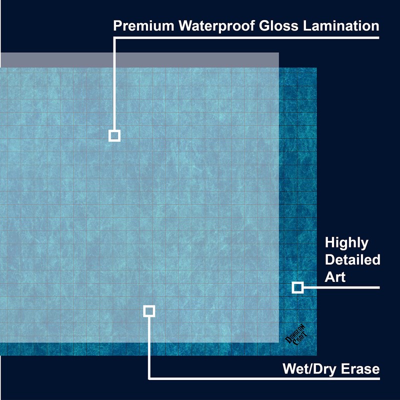 Dungeon Craft Battlemaps Board Game, Battle Mat for Dungeons and Dragons, Double-Sided Gloss Laminated DND Mat, Wet and Dry Erase Board, Table Top Games (Ocean Pack, 24"x33"/1" Grid)