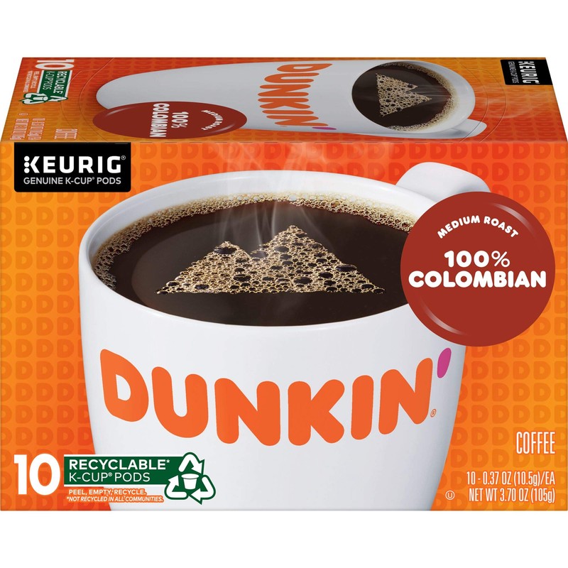 Dunkin' 100% Colombian Medium Roast Coffee, 10 K Cups for Keurig Coffee Makers (Packaging May Vary)