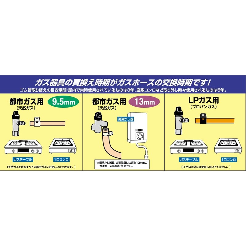 - LP Gas Hose 6.6 ft (2 m) with Hose Band 0.4 inch (9.5 mm)