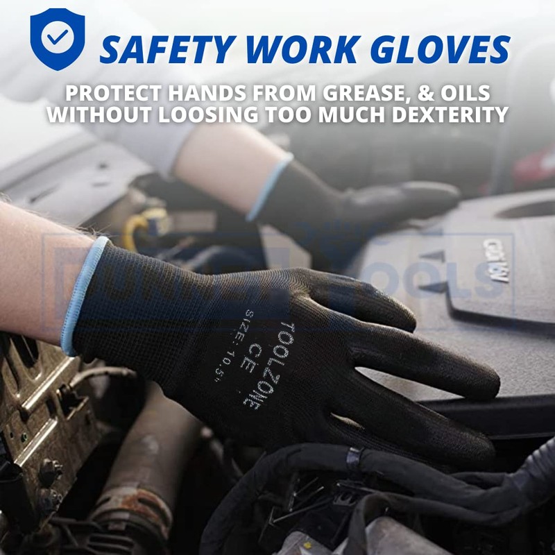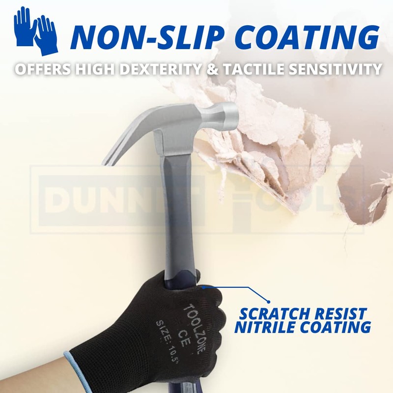 Dunnet Tools 12 Pairs Large Work Gloves Men Women Scratch Resistant XL Nitrile Gloves PPE Hand Protection Antislip Glove Ideal For Mechanics Scaffolders Construction Workers Gardening