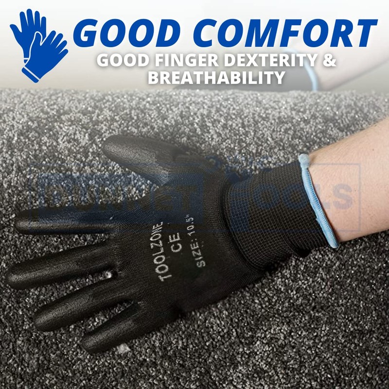 - Black Gloves With Grip - These Large-sized (10.5") Black-coated Mechanic Gloves Are Essential For Handling Various Materials, Providing Year-round Hand Protection. The Safety Gloves Feature A Nitrile Coating Which Provides Grip.