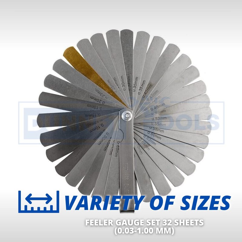 - This 13 Blade Feeler Gauge Set Contains Sizes From 0.05mm Up To 1.00mm. This Makes Is Quite Versatile And Useful For Many Different Applications Such As: Being Great For Use On Guitar Necks, Engines, And So Much More.
