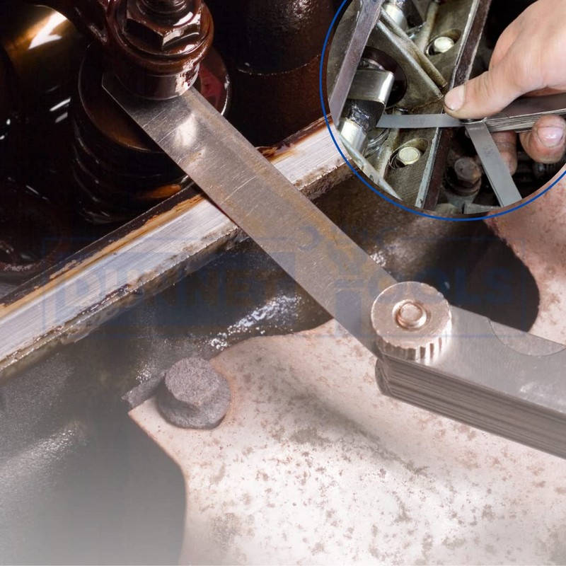 - These Feeler Gauges Are Made From Stainless Steel And Can Be Used To Measure The Thickness Of Tappet Clearances, Piston Ring Gaps ,spark Plugs Gaps, Bearing Clearances And Other Hard To Reach Places.