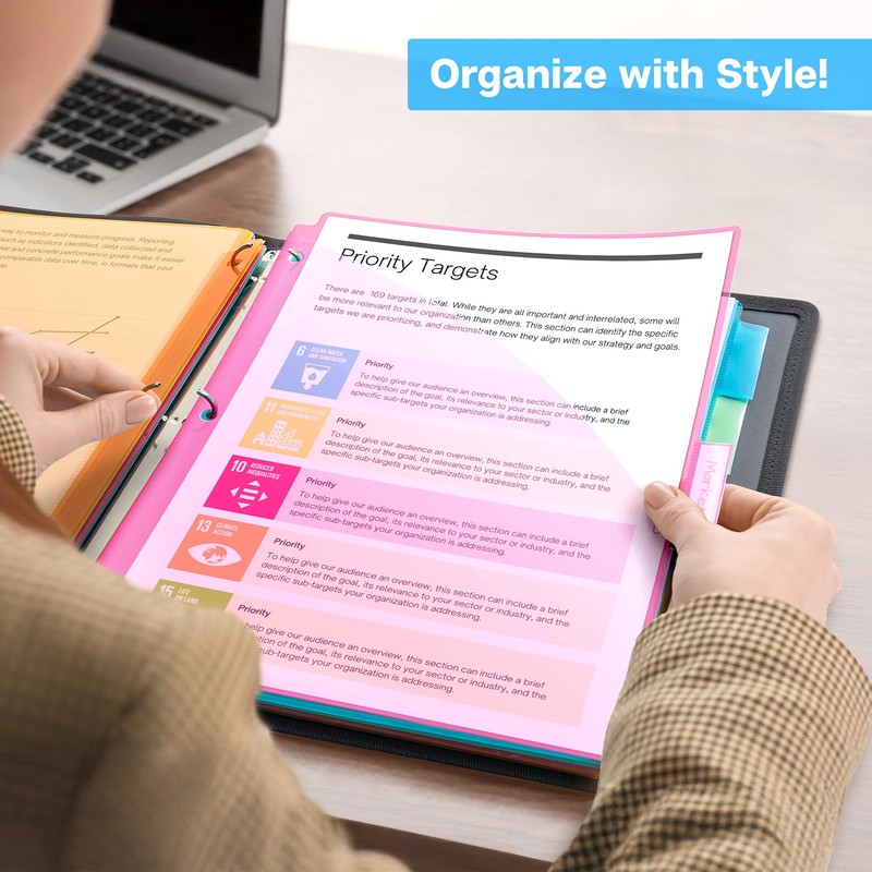 Versatile: Organize documents with 5 tab binder dividers with pockets, plastic subject dividers with pockets, or pocket folder dividers for 3 ring binders. Use 5 subject dividers to organize your 3-ring binder or school notebook.