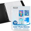 Archival photo sleeves offer safe long-term storage of 3.5 x 5 photos and keepsakes. The crystal clear durable heavyweight poly plastic used makes these photo album inserts non-cling and non-ink transfer, and they will not yellow over time.