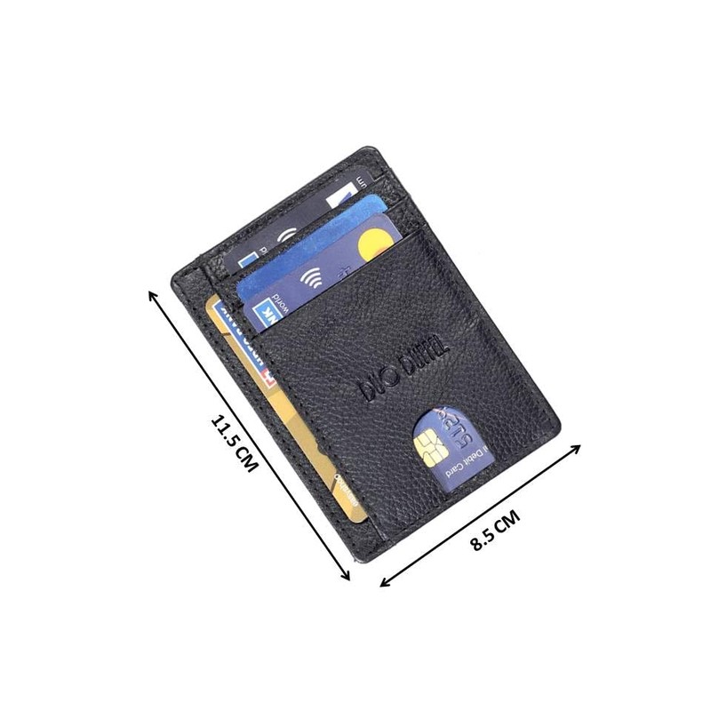 DUO DUFFEL Genuine Leather Slim Wallet | RFID Blocking Skinny Minimal Thin Front Pocket Wallet Sleeve Card Holder (Black)