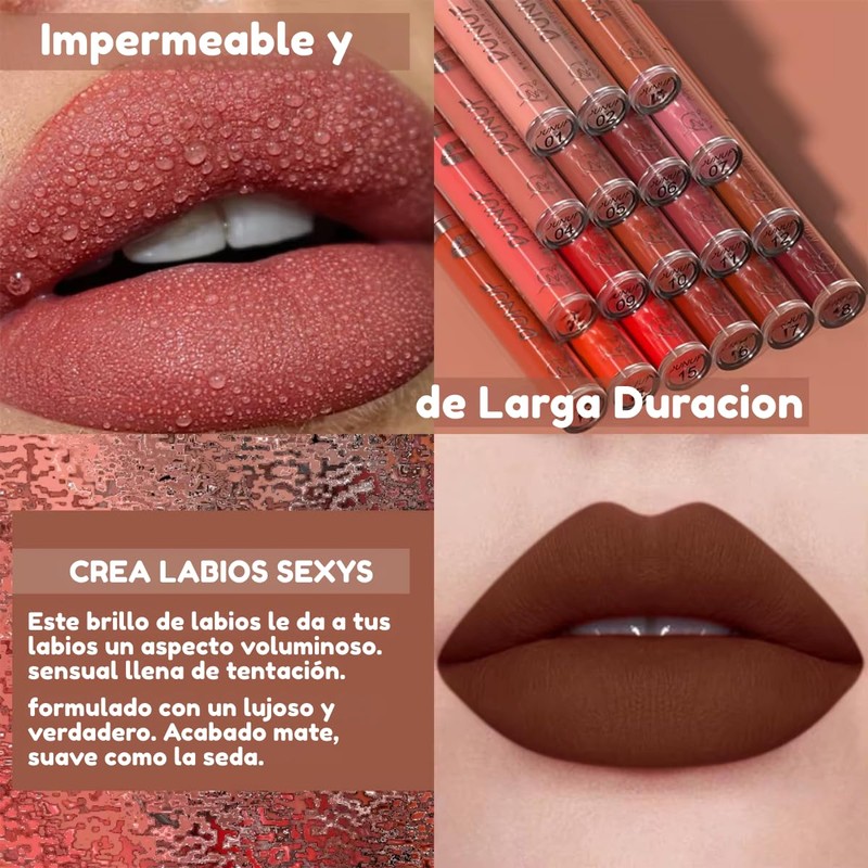 Estos labiales son impermeables y de larga duración, lo que significa que resisten el sudor, el agua y el roce sin correrse ni manchar. Además, cuentan con una tecnología antiadherente, lo que evita que se transfieran fácilmente a tazas, mascarillas o ropa. Una vez secos, se fijan perfectamente a los labios sin dejar sensación pesada o pegajosa, ideales para el día a día o eventos especiales.