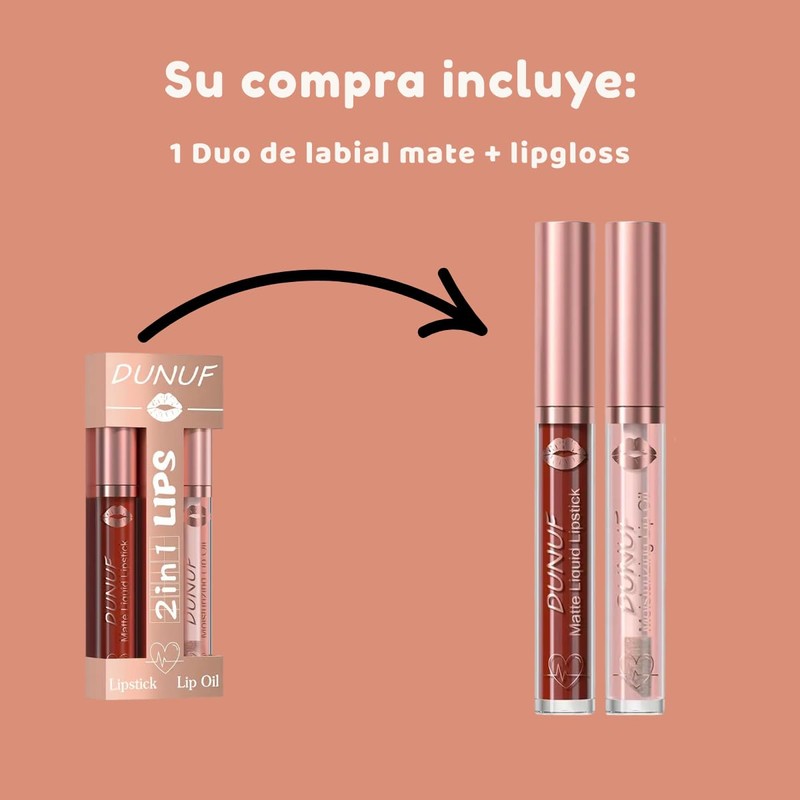 - 1 Duo de 1 labial mate y 1 lipgloss