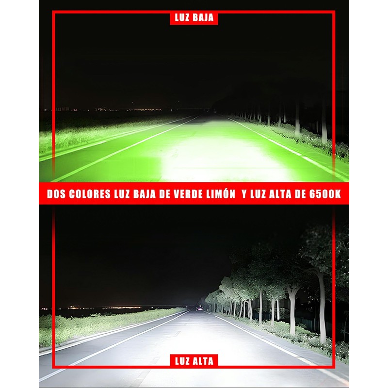 Duo Lu Tong Faros LED 9004 HB1 para Auto Kit de Conversión, 300W 32000LM 900% Brillo, 9004 HB1 LED Luz Alta 6500K Blanco Y Luz Baja Verde Lima para Focos Delanteros, Plug & Play, Paquete de 2