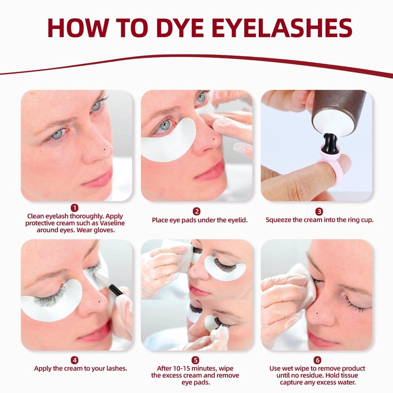 - Easy to use: the eyelash colour kit contains complete tools and does not need complicated mixing steps to help you finish faster. Following the steps instructions, you can DIY your own specific colouring eyelashes and brows within 15 minutes.
