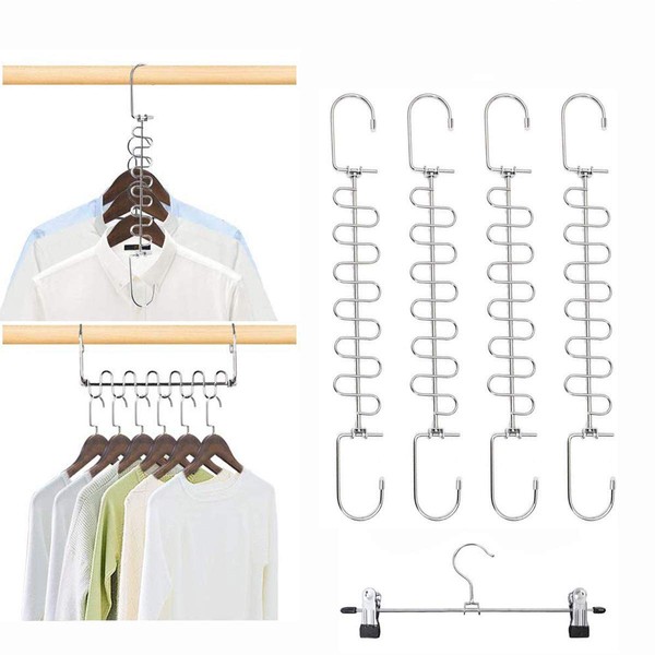 DUOFIRE Space Saver Hangers, Horizontal and Vertical Hangers, 12 Layers, Stainless Steel, Durable, Hanger Hooks, Closet Storage, Magic Hangers (Set of 4)