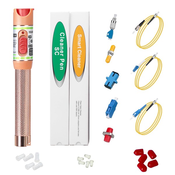 Duogalia Fiber Optic Cable Fault Locate Kit - 30Km VFL Fiber Optic Visual Fault Locator, FC - LC Adapter, LC/SC/ST/FC Coupler, 2 Cleaners and 3 Short Patch Cords