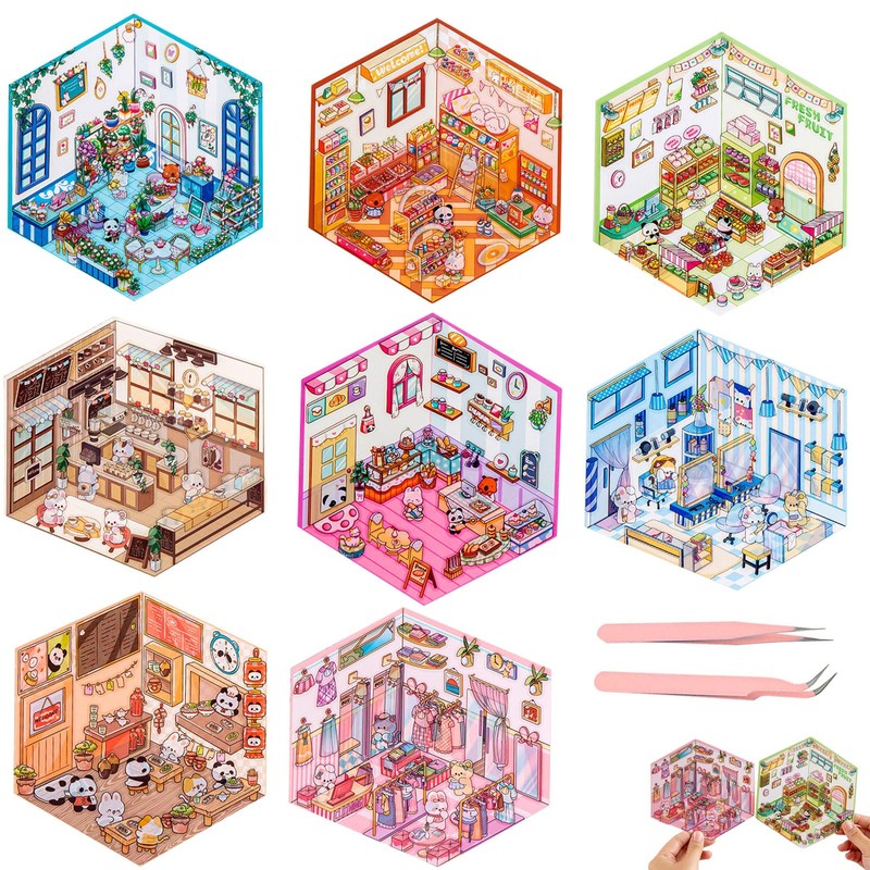 - 3D home sticker set: the 3D house stickers contain 8 themed backgrounds, including supermarket/grocery store/bookstore/restaurant/clothes shop/fruit shop/barber/cafe. You can combine and design unique combinations to create your own 3D house scenes and let your imagination run wild.