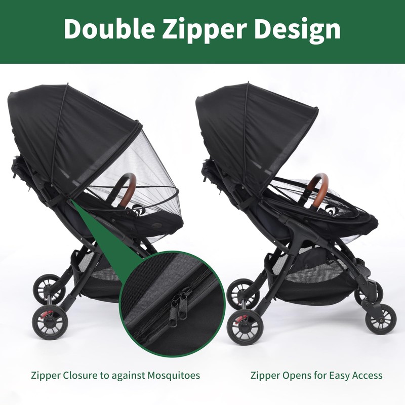 - Easy To Open And Close: Stroller bug net cover is a two-stage design with high-quality zipper,which is easy to open and close. You can easily put your baby in or out of the Stroller without the need to remove the net from the stroller,saving your lots of time and effort