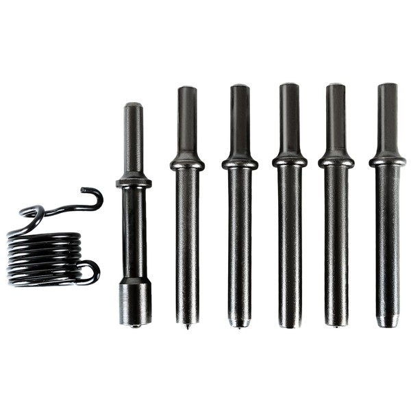 DUPDMKIN 7 Pcs Air Hammer Bits Smoothing Pneumatic Solid Rivet Tool Carbon Steel Air Hammer Attachments with 0.401" Shank & Spring for Solid, Hollow Rivets