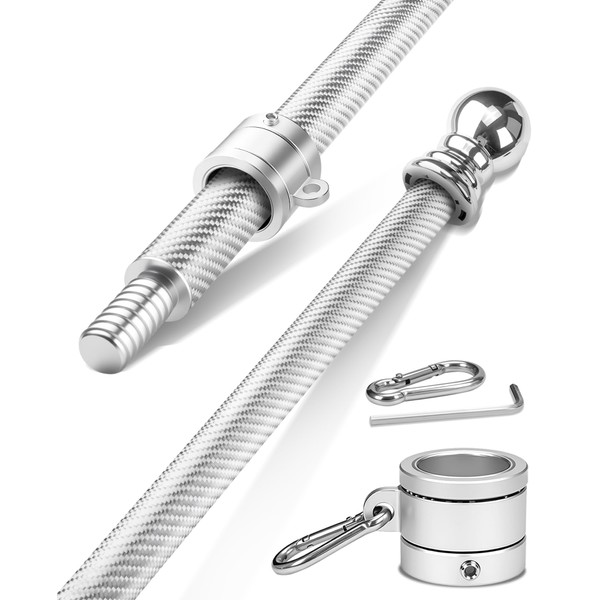 DUPKEV 6FT Carbon Fiber Flag Pole for Outside House – Silver Porch Flagpole, 1 Inch Diameter, Rustproof, 360° Rotating Flag Rings & Stainless Steel Carabiners Included, for All Weather