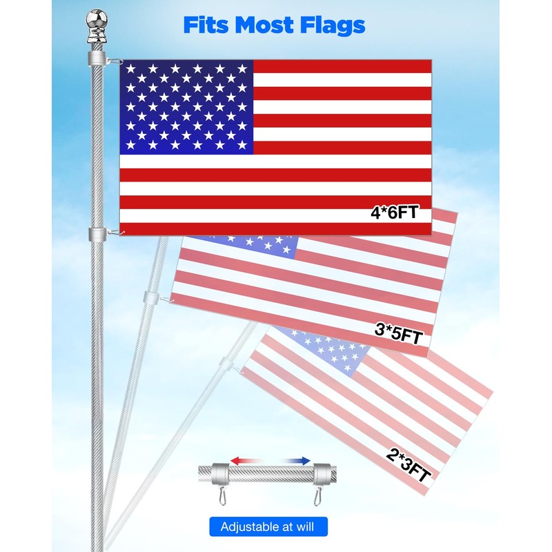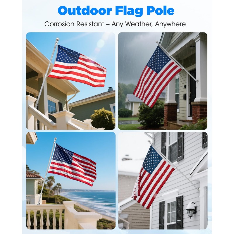 - 【2-Section Heavy-Duty Flag Pole】1" diameter, 1.6mm thick wall. Two-section design is more stable than typical multi-section poles. Compatible with most grommet flags, including 2x3FT, 3x5FT, and 4x6FT sizes.