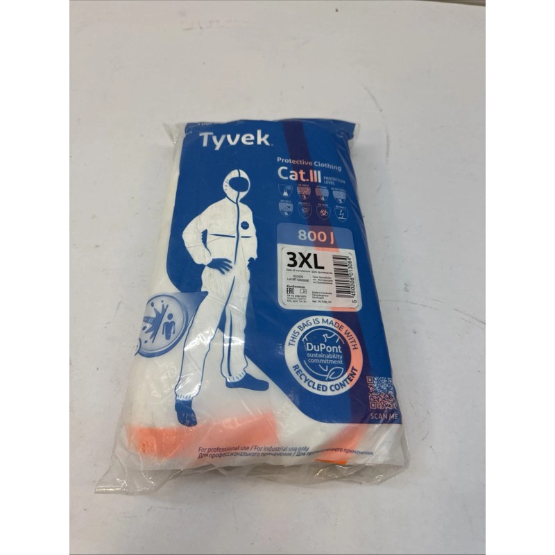 Dupont (1) DuPont 800J TY800J Tyvek Cat III Chemical Protective Coverall Suit 3XL