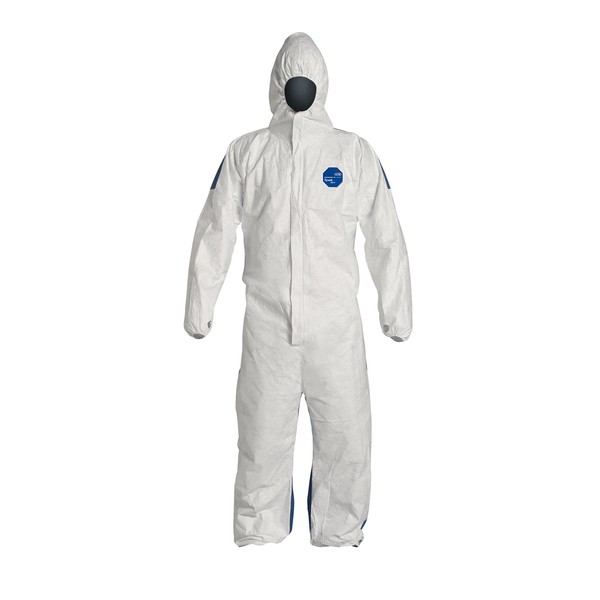 DuPont Tyvek 400D Protective Coverall with ProShield 10 Back, Zipper Front, Hood and Elastic Cuffs, White/Blue, 2X-Large, 25-Pack