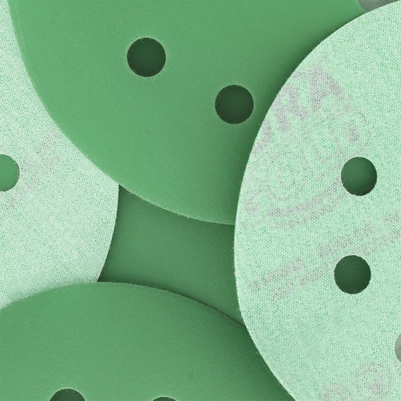- Box of 50 Dura-Gold (1500 Grit) 5" Hook & Loop 8-Hole Premium Green Film Sanding Discs Made with Super Coated Aluminum Oxide Corundum for a sharp cut and uniform finish