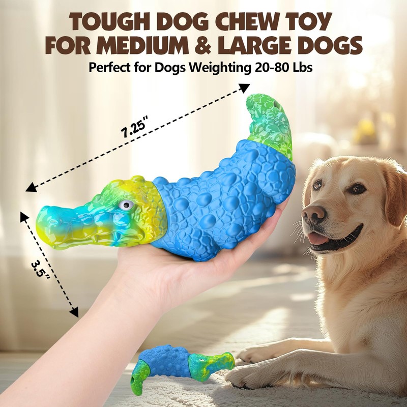Durable Dog Toys for Aggressive Chewers - Tough Indestructible Squeak Dog Chew Toys for Large Medium Small Dogs and Puppies (Blue Crocodile)