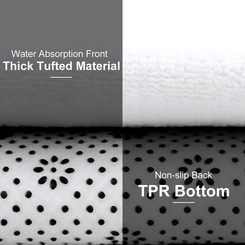 - Dimension : 16"Wide x 24" Long/41x61cm.Upgraded non-slip floor mat,increasing the friction between the floor mat and the floor, not easy to slide.There will be a feeling of support and more comfort when you step on it.Protect your feet from the cold floor at the same time it protects your floor from moisture.