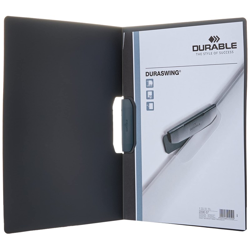 - Box contents: Durable Duraswing 229557 clip folder, up to 30 A4 sheets, anthracite