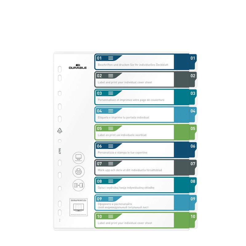 Durable Index 1-10, A4+ high, writable index sheet, 100% recyclable, multi-coloured, 679527