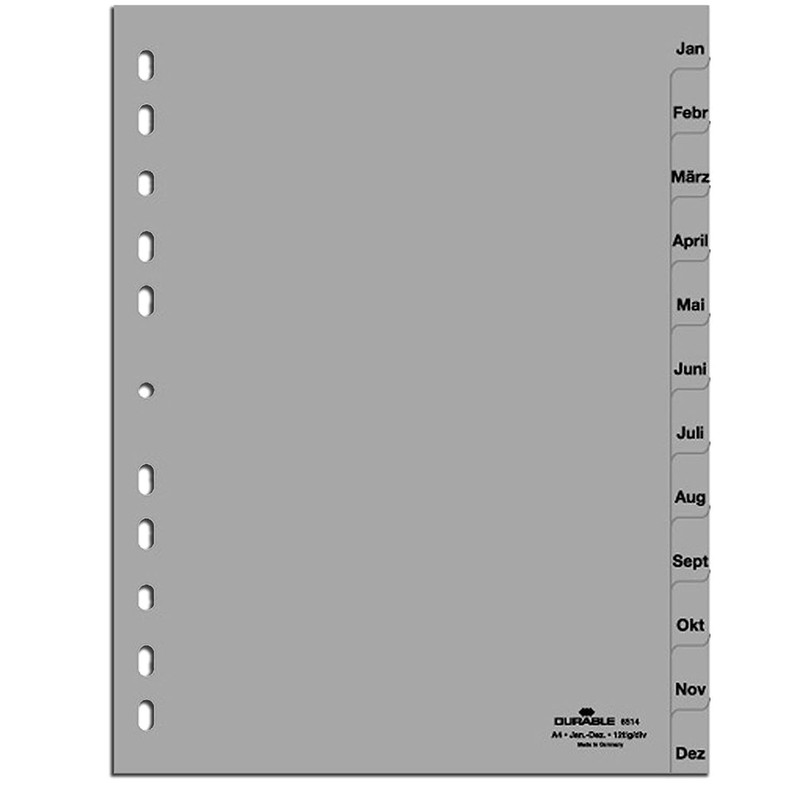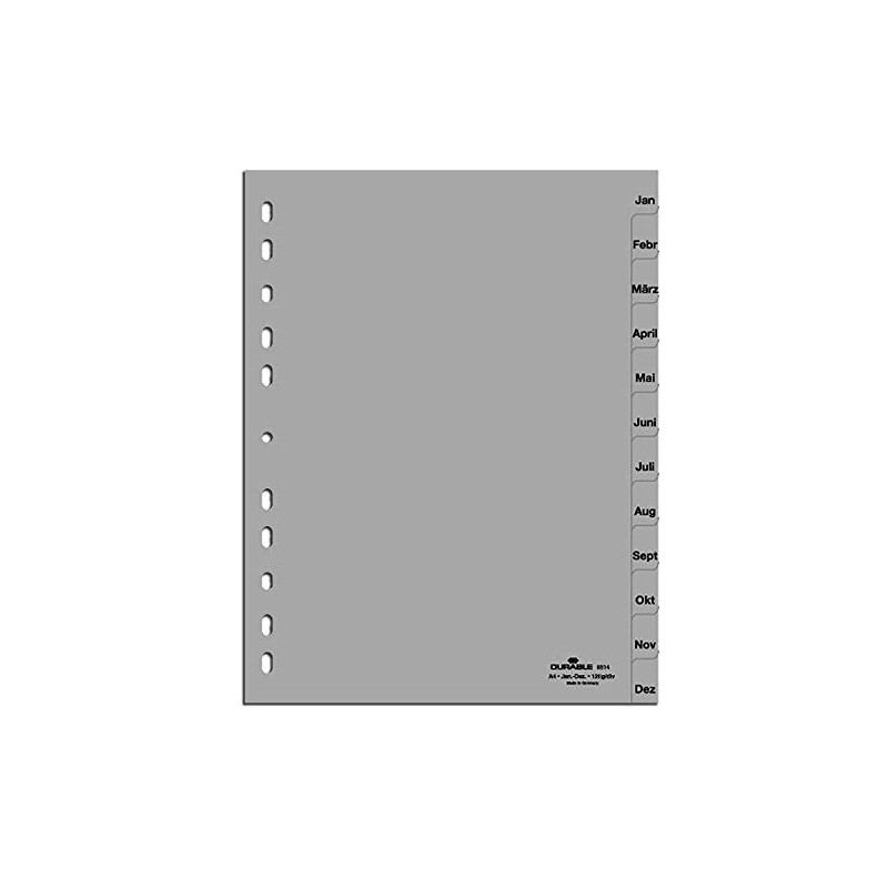 Durable Index for DIN A4, Full Coverage (Pack of 5, Grey, Jan-Dec)