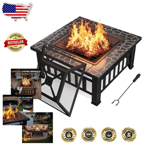 - Reliable Security: Designed with sturdy legs for stability, with a mesh spark screen and poker included to prevent sparks and enhance safety.
