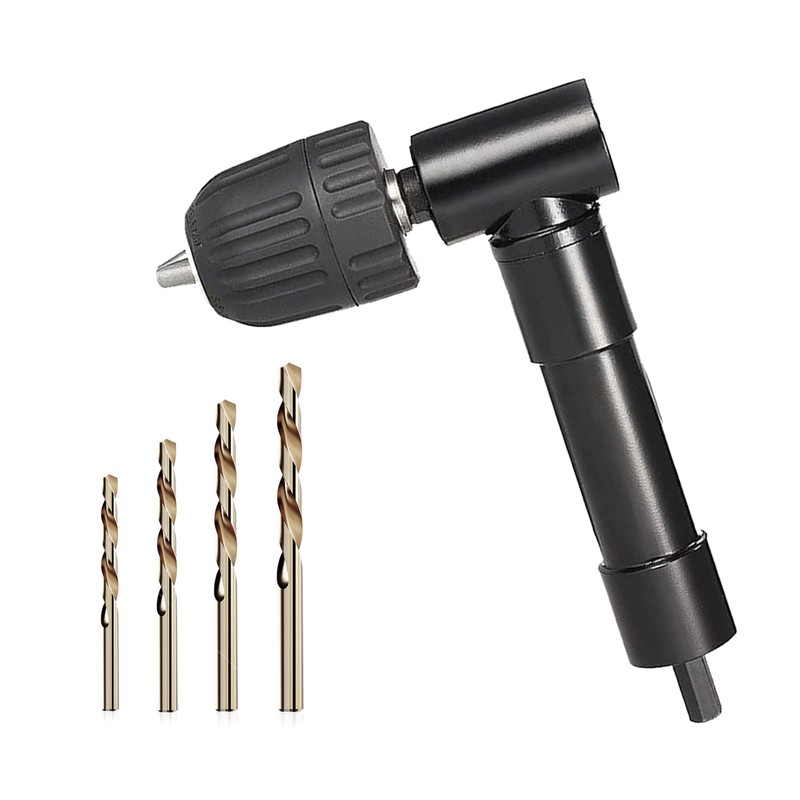 Durable Practical Right Angle Drill,4PCS Different Models Bits,0.8-10mm Right Angle Bend Extension 90 Degree Professional Cordless Drill Attachment for Tight Corner Workspace(Black)