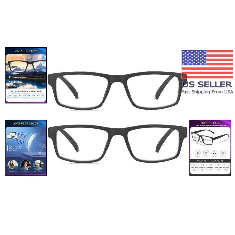 Durable Unisex Reading Glasses – 2-Pack Blue Light Blockers with Flexible Hinge