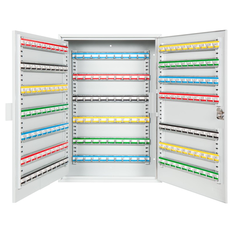 Durabox 200 Position Steel Key Cabinet - Organize and Secure Key Storage Lock Box with Numbered Hooks and Tags for Valets, Hotel, Office, Car Dealerships and More (K200) (Light Grey)